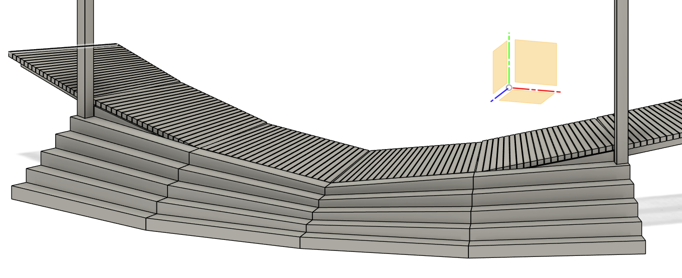 Ive added a slot to the moving platform, so when the hingebars are put in place, they can be rotated into the slot to prevent them moving forward or backward when the ride moves.