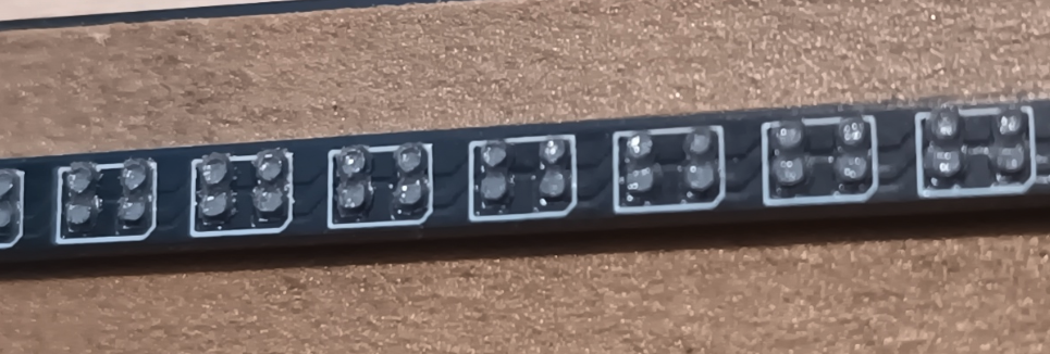 When you cut the board to length for the shorter rafters, there is some pads on the back of the pcb to join it to the data input/output for the next rafter. I was laying the board out when i was high, so im not 100% sure i put the pads in the right place 😂