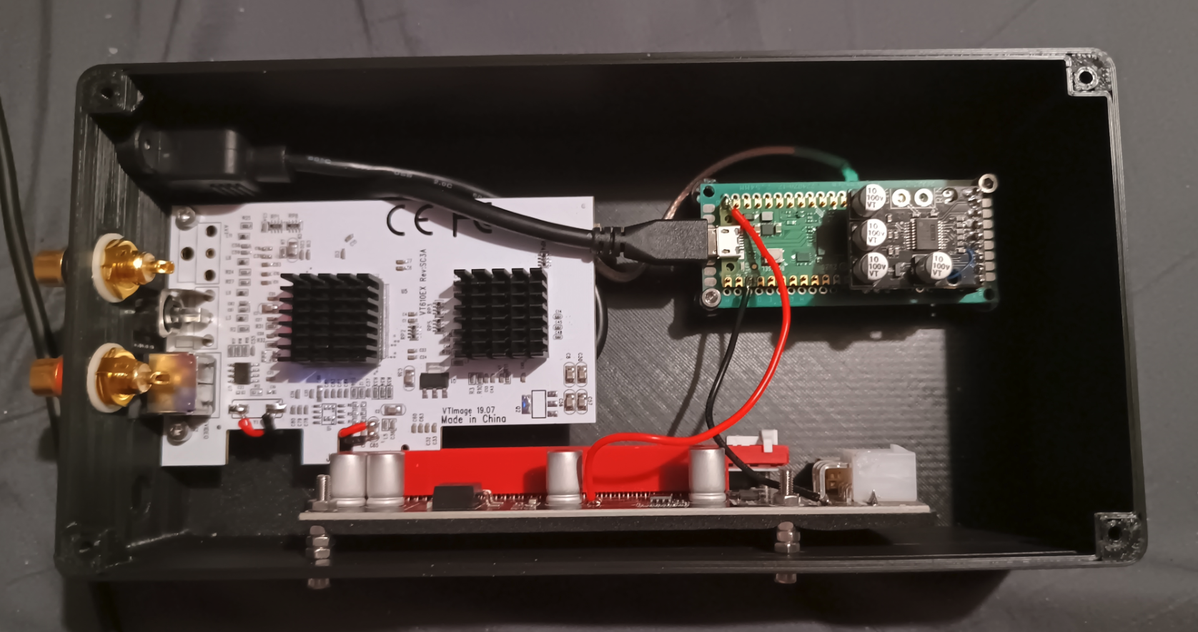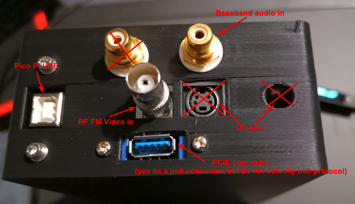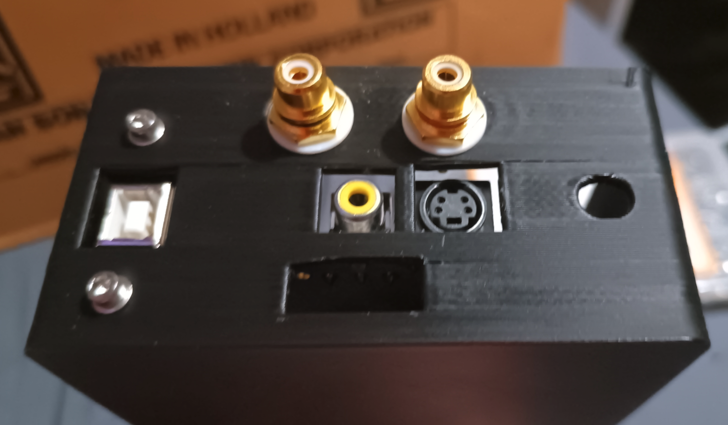 Im not exactly happy with it. But it does the job, and its a waste to reprint it when i only need one of them. If i was gonna print another, i would modify the hole under the svideo connector, its for the usb cable, i would like to add a panel mount like the one on the left for the pico pi. I would increase the height of the standoffs on the pico pi board, and i would add standoffs for the pcie adapter board.