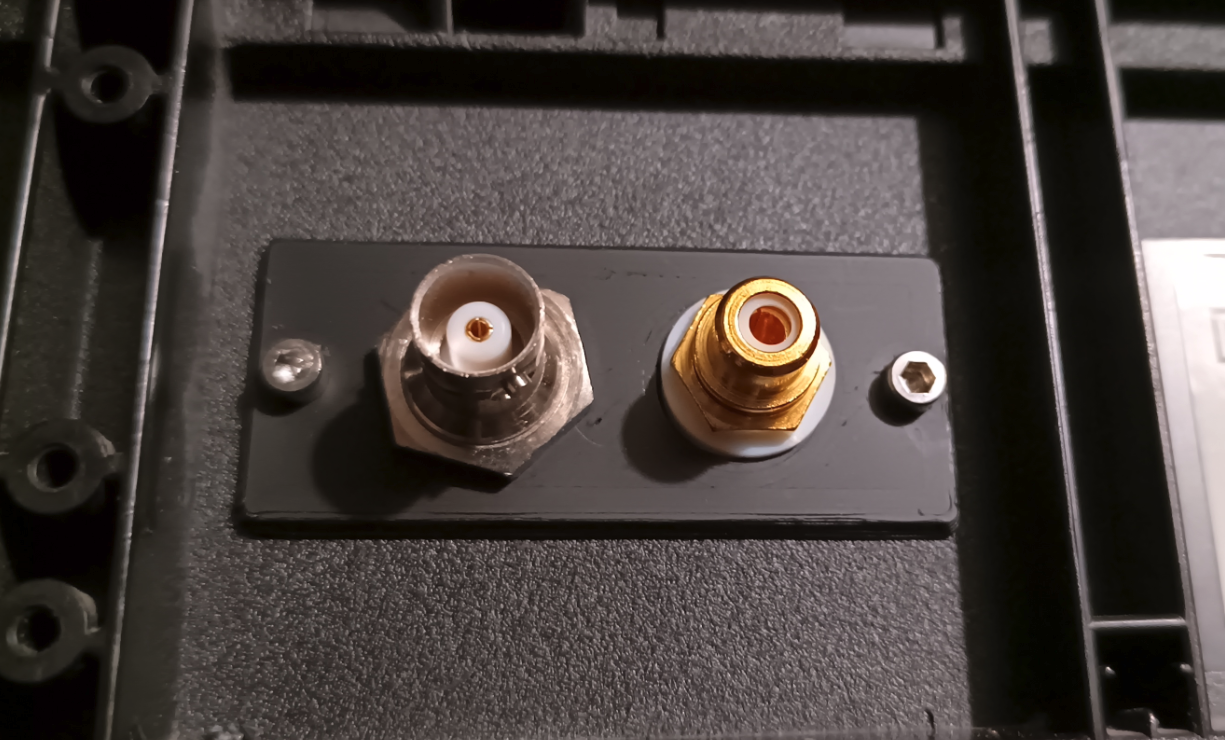 I made a little plate for it, i would like to say because of care and attention, but no, its cause i made the hole to big for the BNC connector 😂